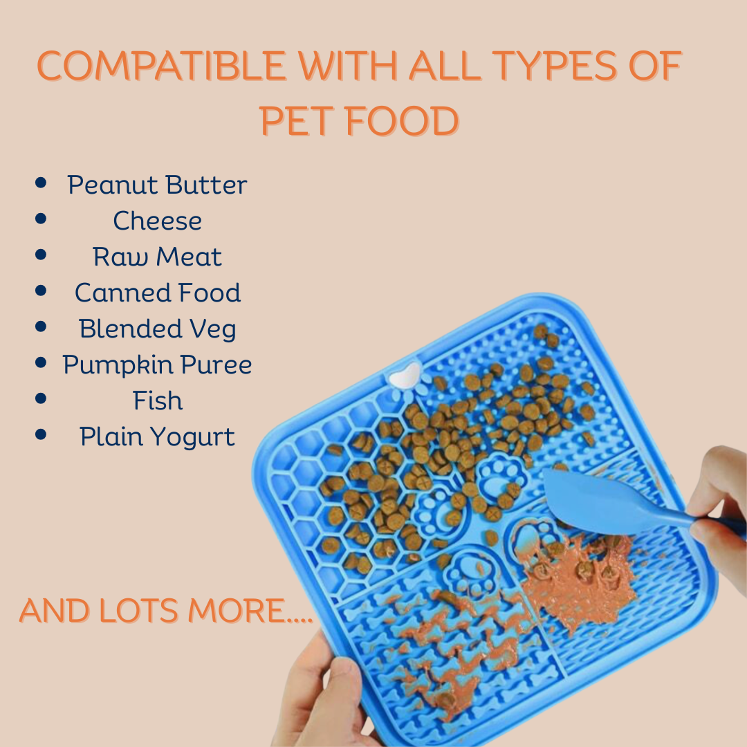 Whether you write on raw food, peanut butter, yogurt, or wet treats, the lick mat slows down feeding while providing sensory stimulation. Lick mats are freezer-friendly for refreshing summer treats and dishwasher-friendly for easy cleaning—ideal at mealtime, during grooming, and for crate training.