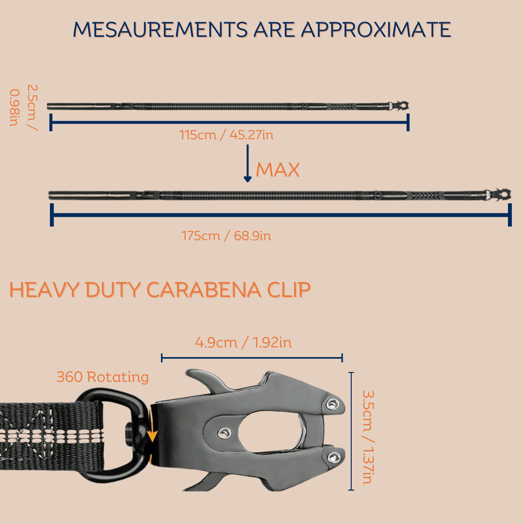 Take control in comfort and safety with the Ultimate Bungee Dog Lead from Archie’s - perfect for strong pullers and dogs who like to romp! Built for toughness and usefulness, this heavy duty lead comes with a shock absorbing elastic band to reduce strain on you and your dog making every walk more pleasurable, smooth, easy and safe.